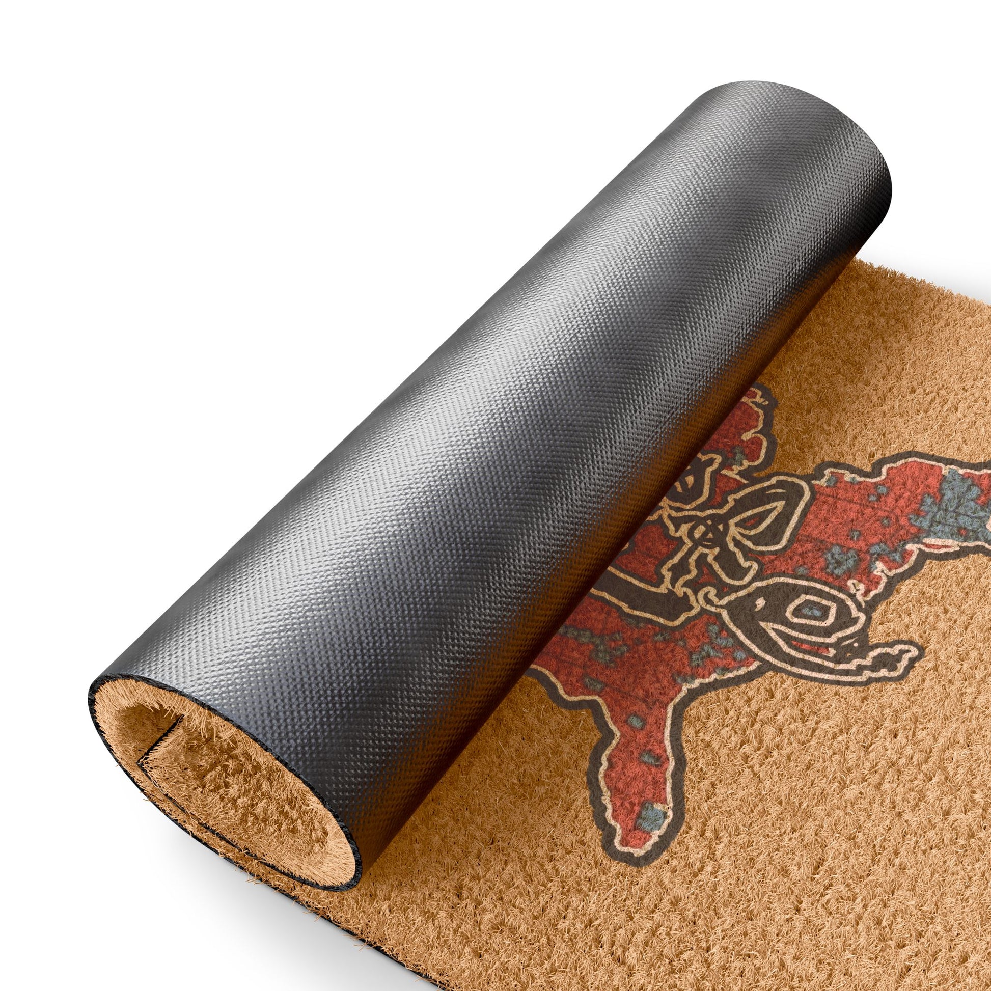 Each custom mat comes in a 24" x 16" size and is made with Grade A tufted coir coconut fiber, making it perfect for outdoor use. All mats feature black vinyl backing for increased stability.